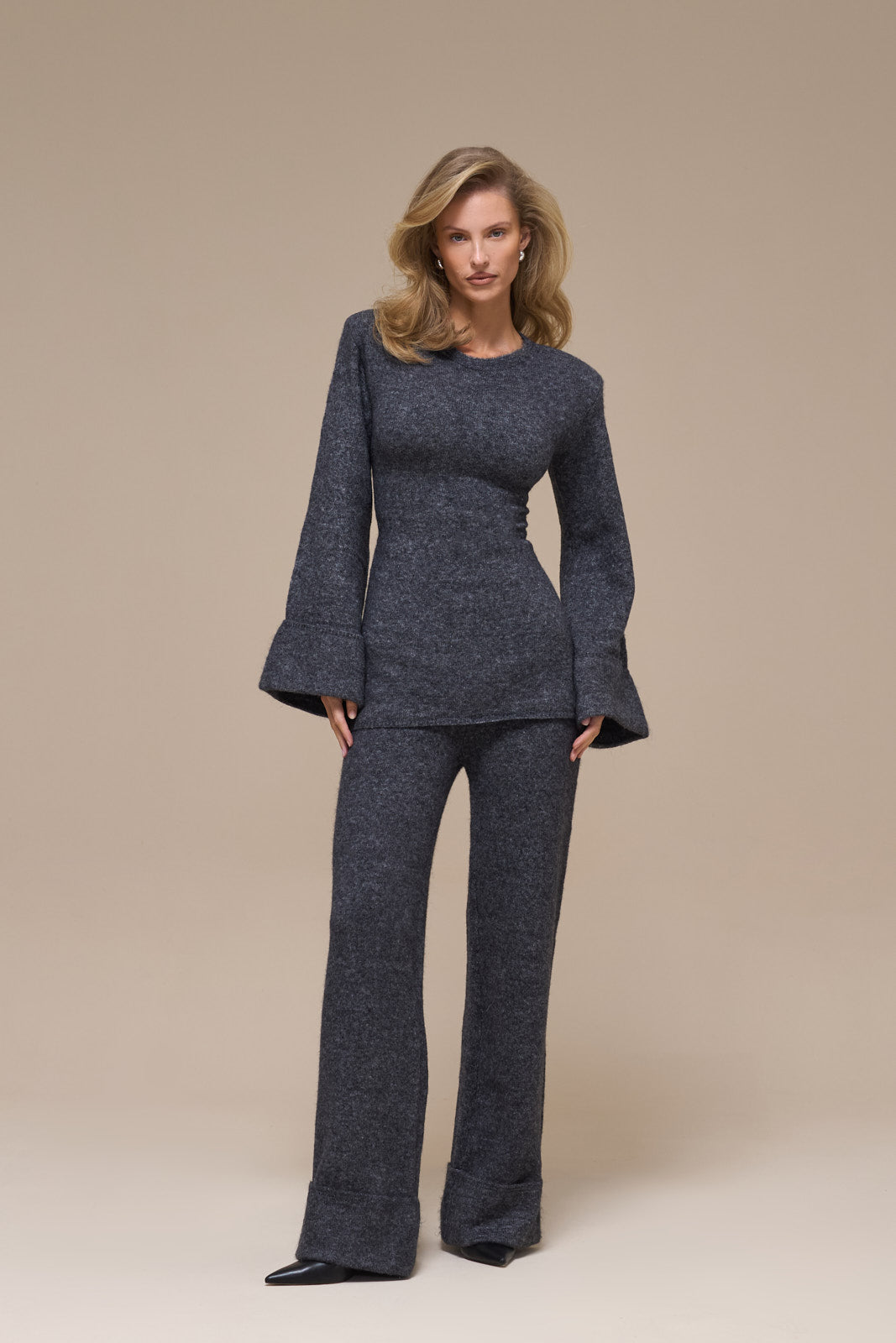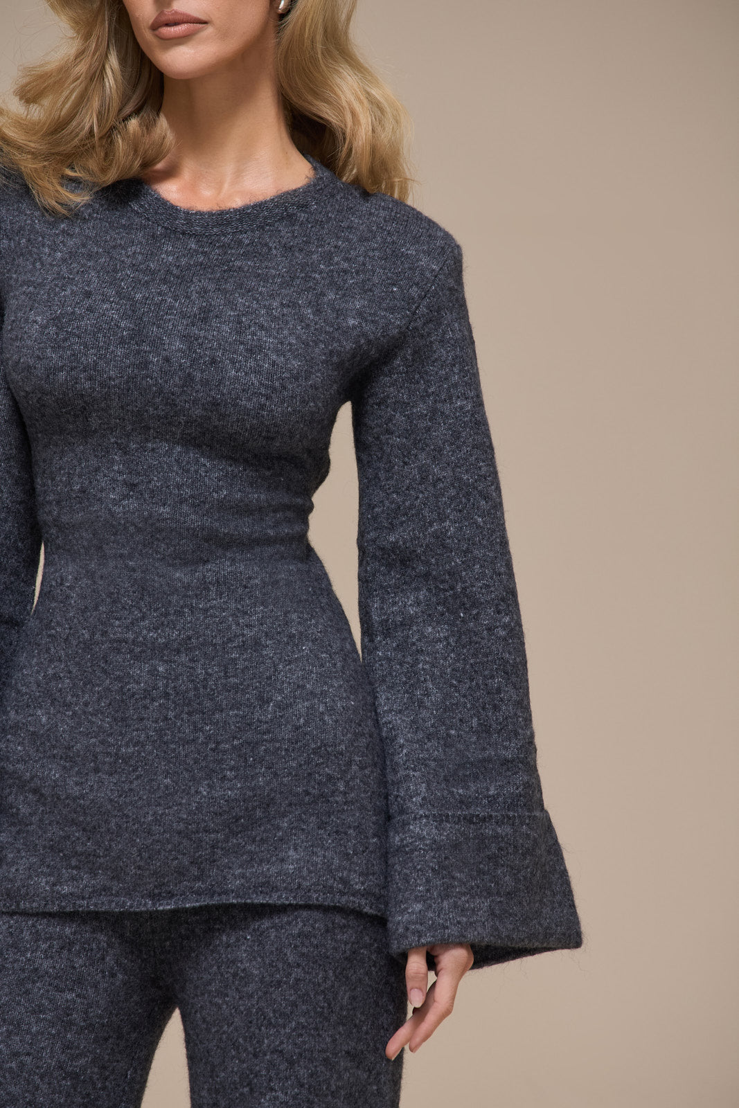 RHYLA LONG SLEEVE KNITTED TOP | GREY