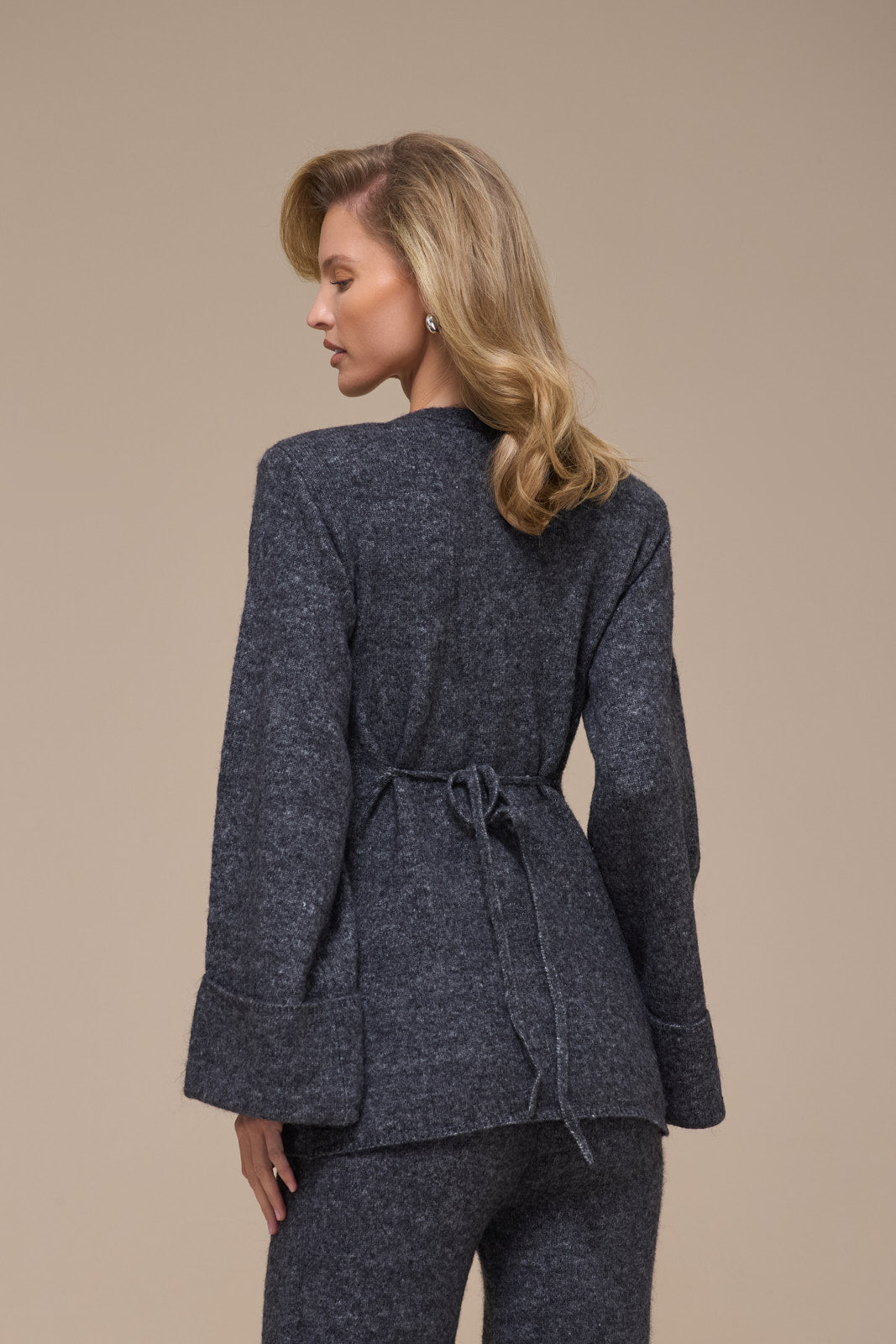 A waist tie at the back lets you define your fit, cinch it in or wear it loose. Finished in a dark grey hue, this is the kind of piece that brings quiet drama to your everyday rotation.