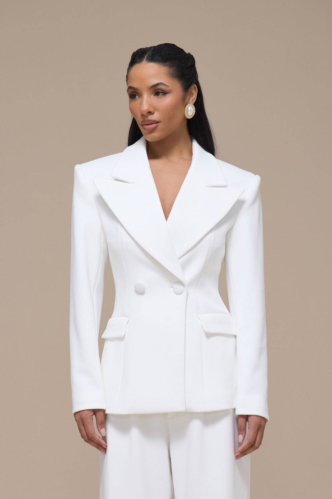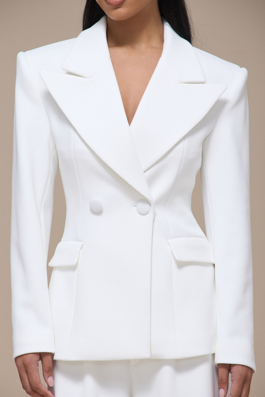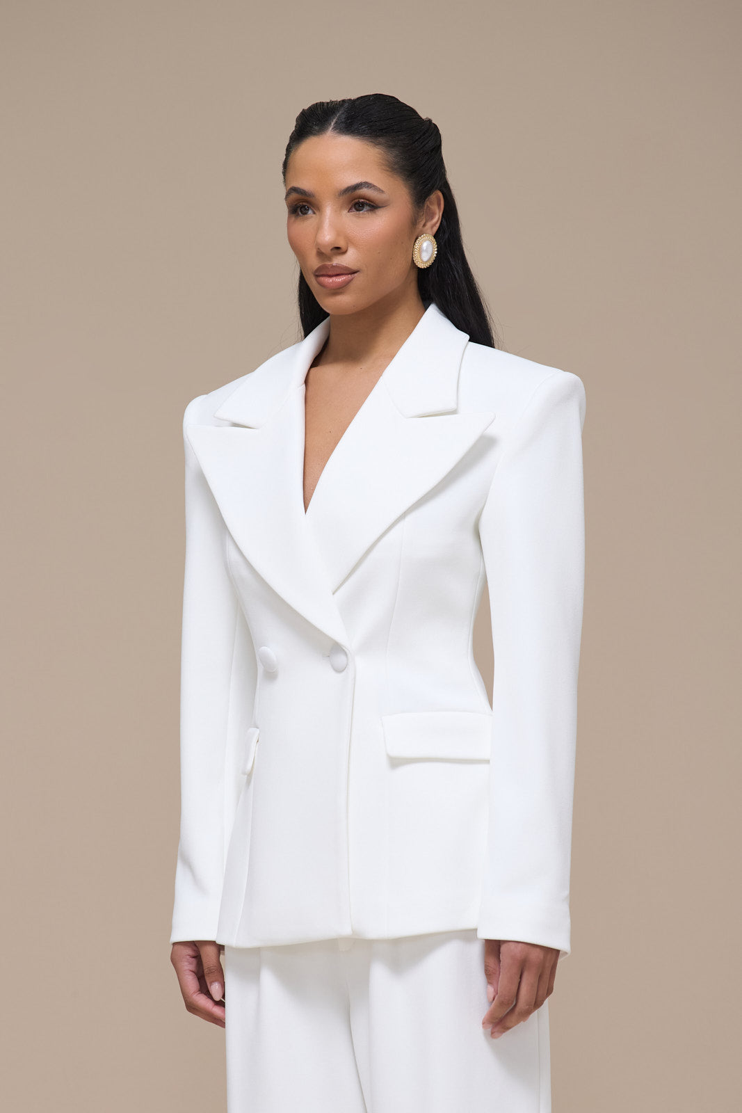 CHARLOTTE DOUBLE BREASTED PADDED SUITING JACKET | WHITE