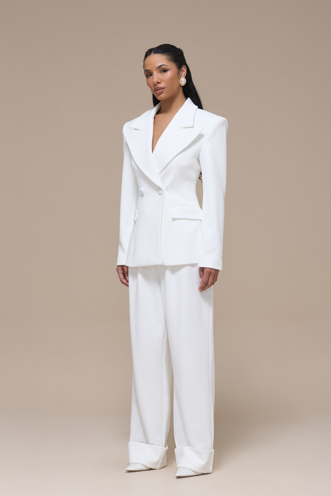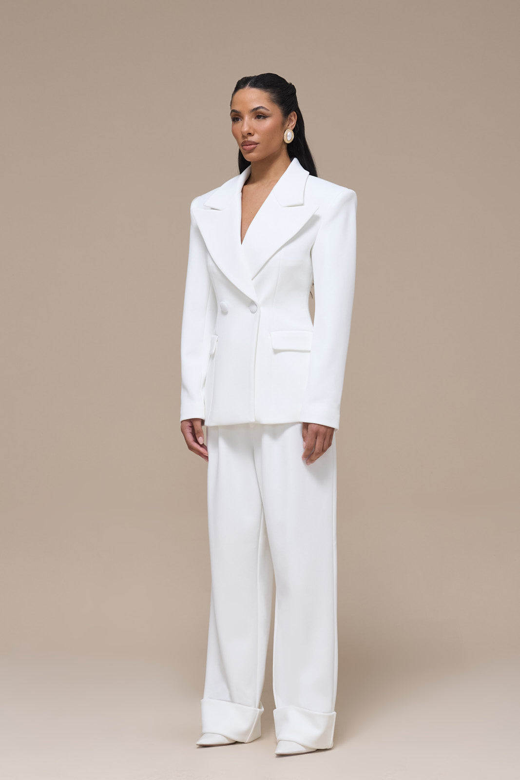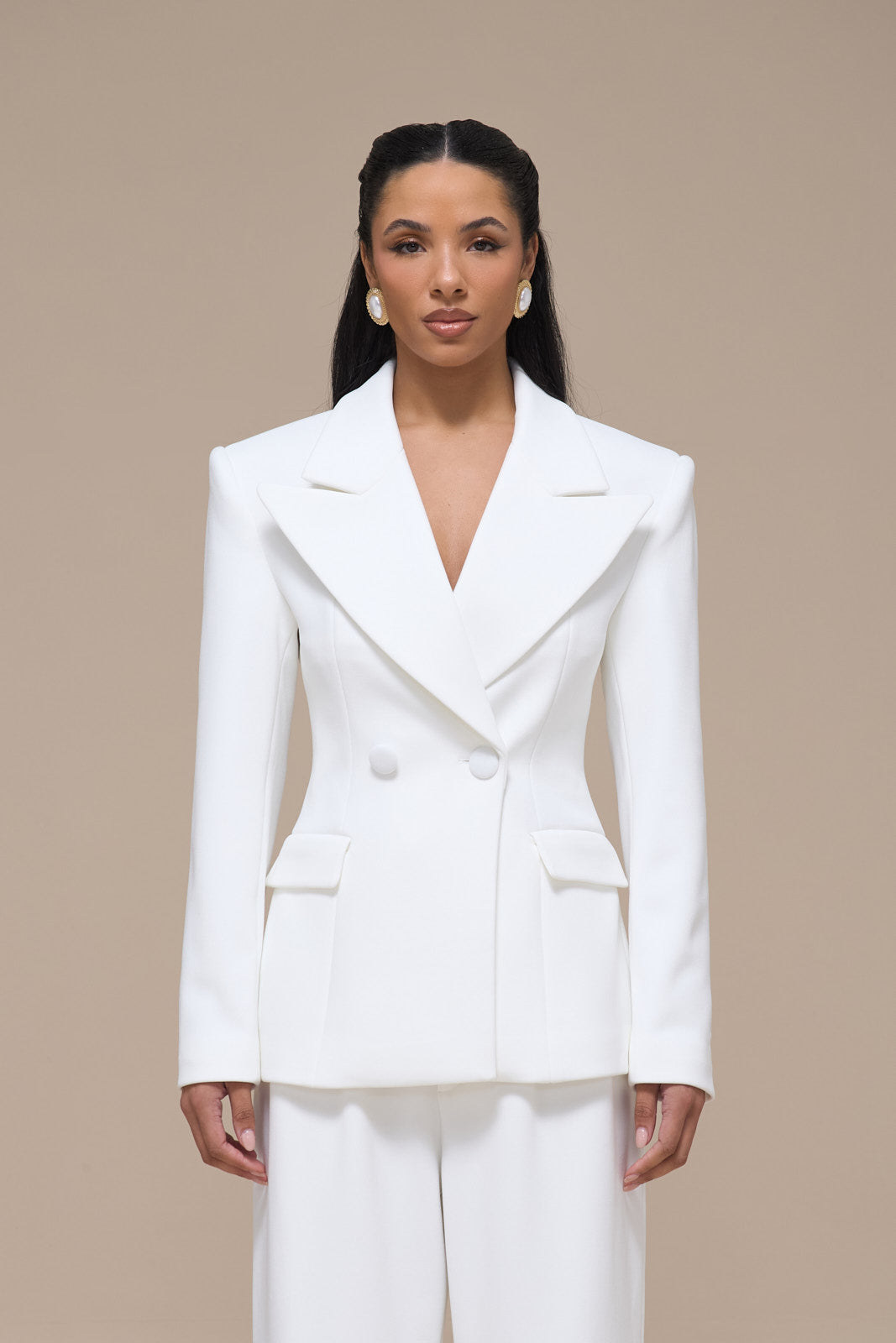 CHARLOTTE DOUBLE BREASTED PADDED SUITING JACKET | WHITE