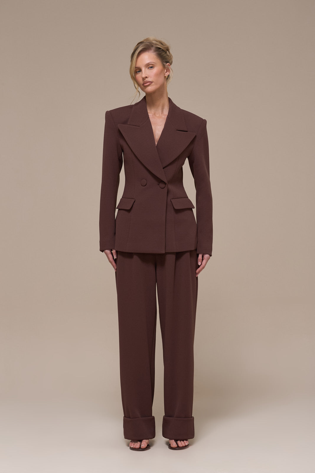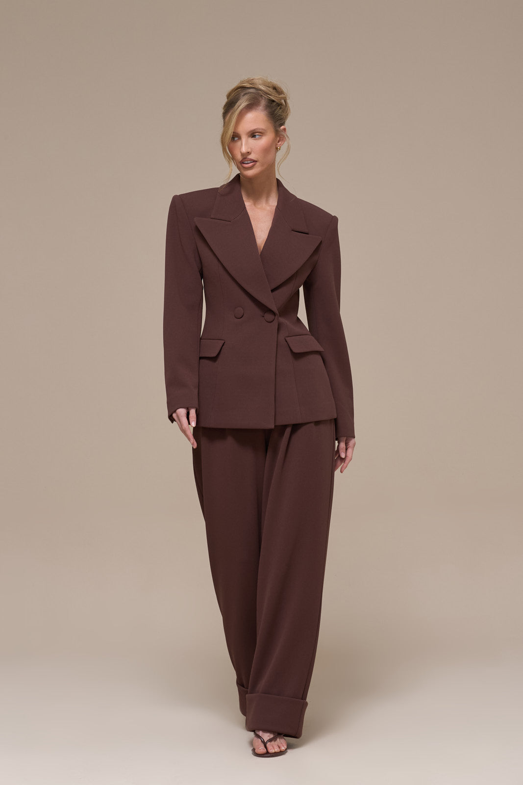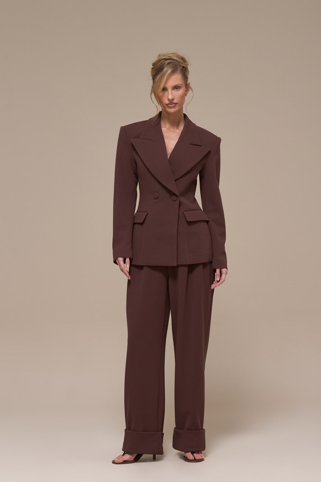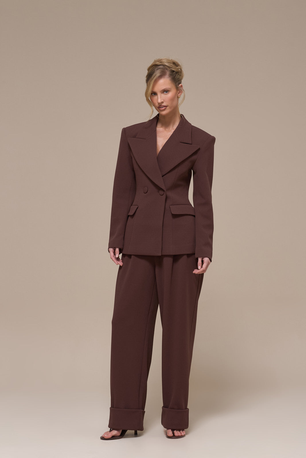CHARLOTTE HIGH WAIST PLEATED SUITING TROUSERS | CHOCOLATE