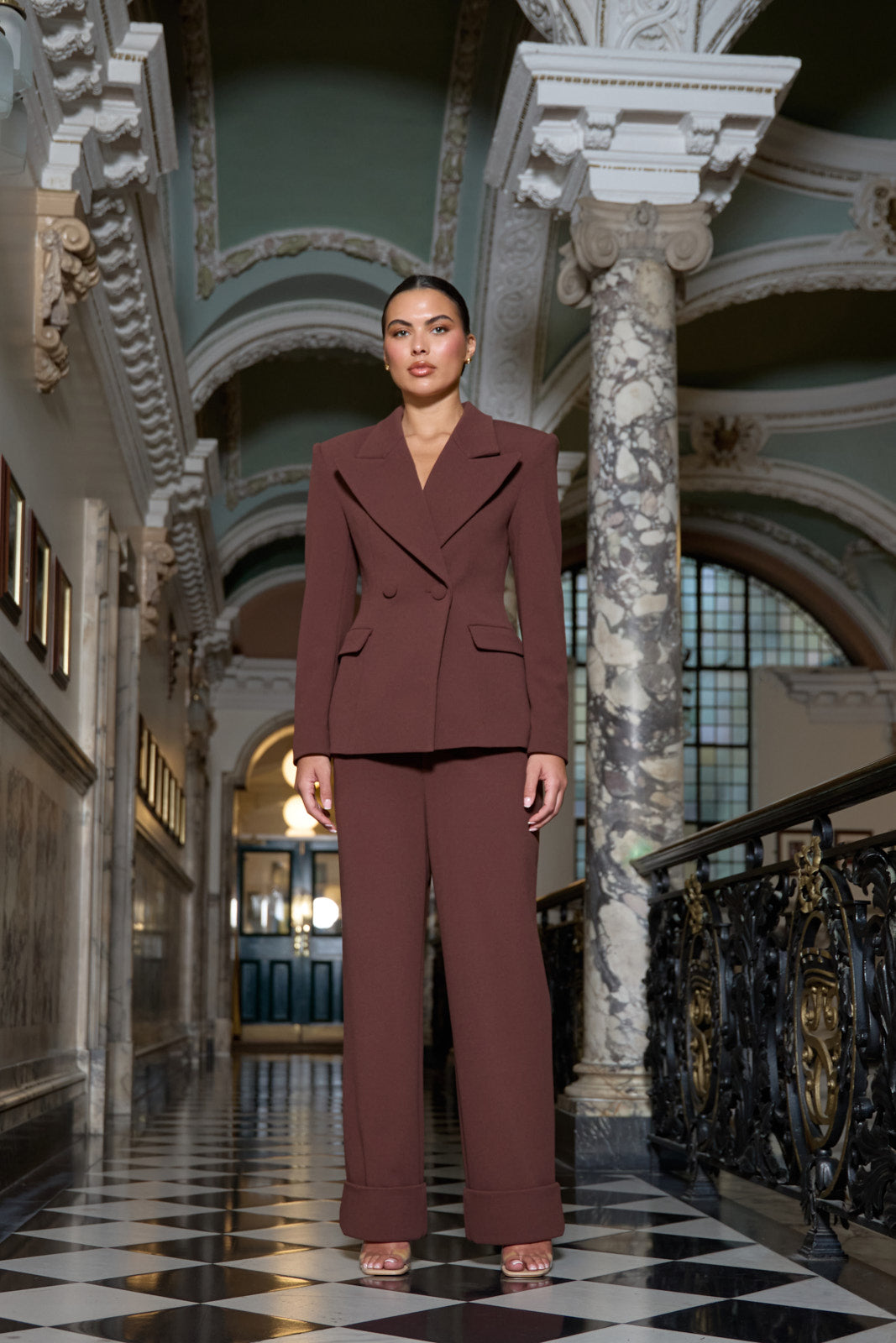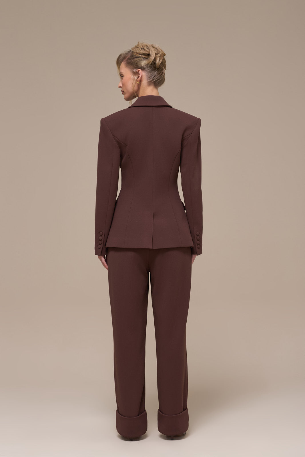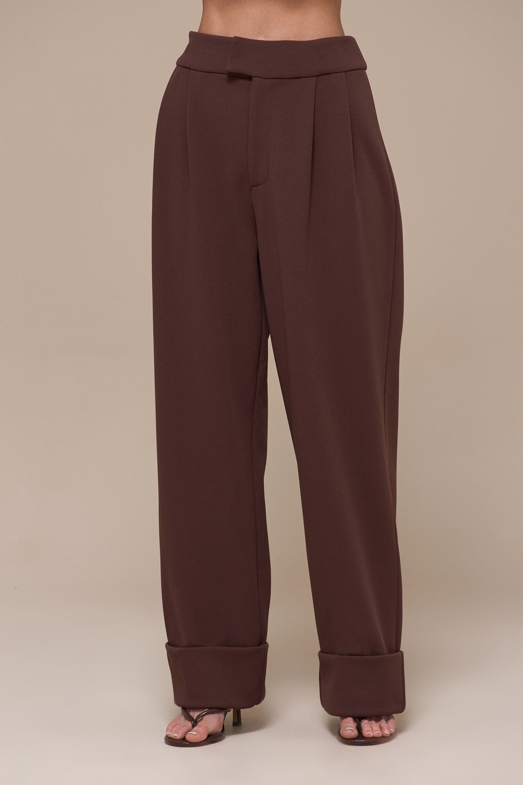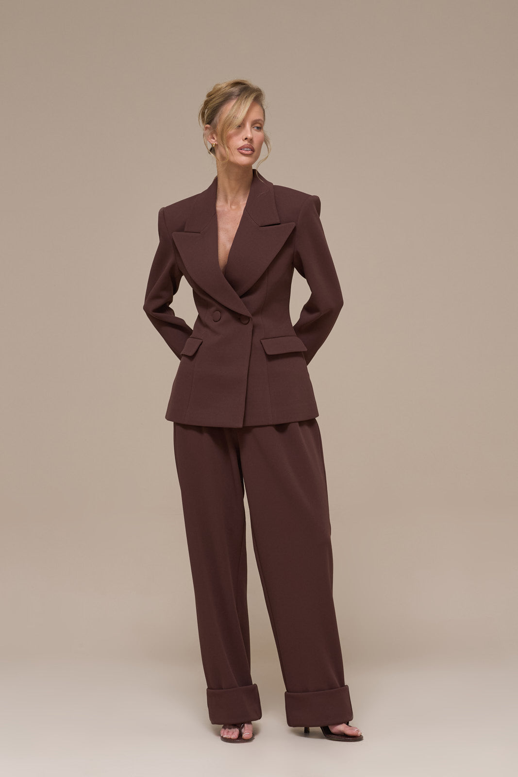 CHARLOTTE HIGH WAIST PLEATED SUITING TROUSERS | CHOCOLATE