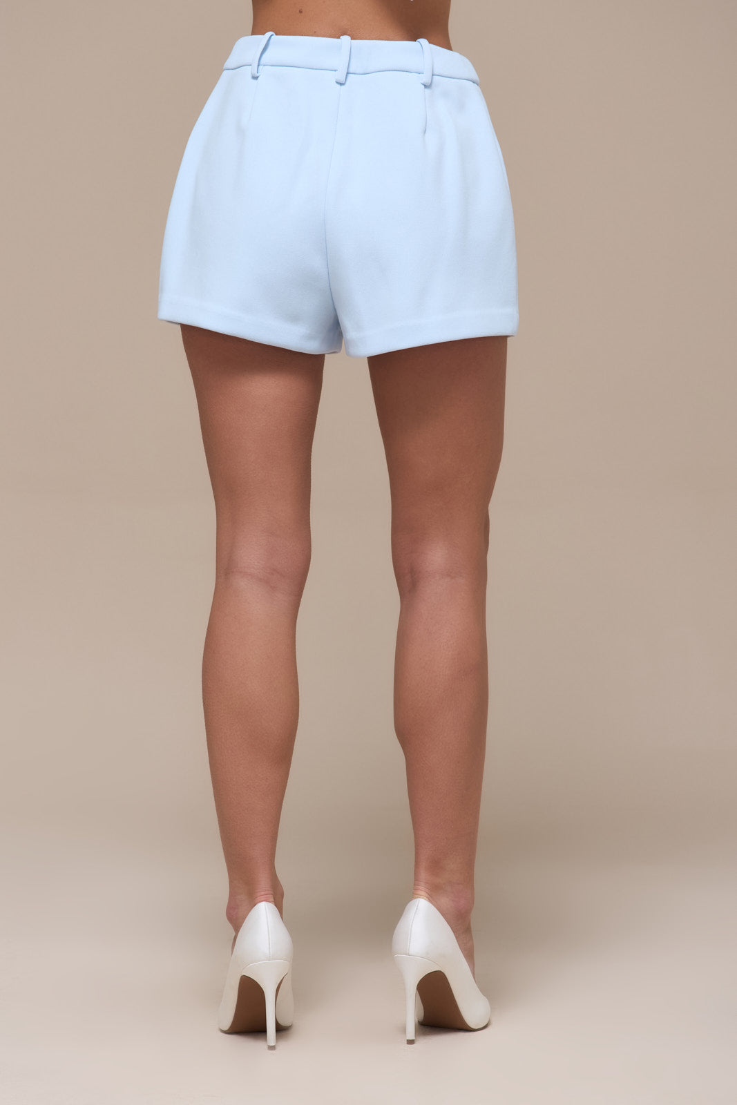 CHARLOTTE MID WAIST SUITING MINI SHORTS | BABY BLUE