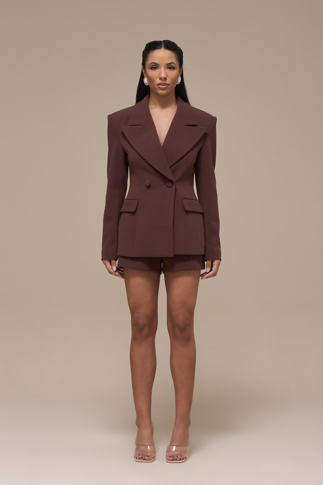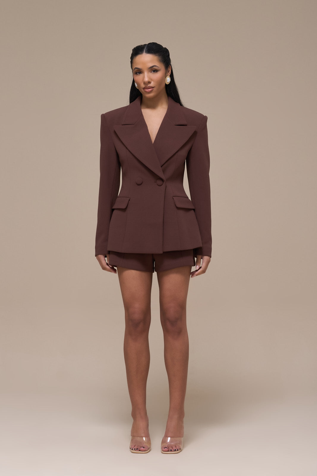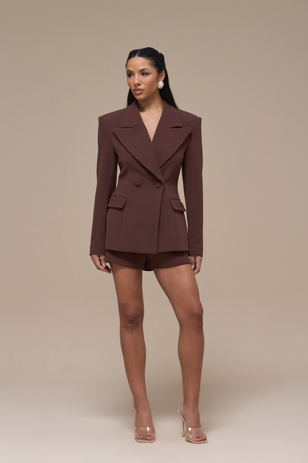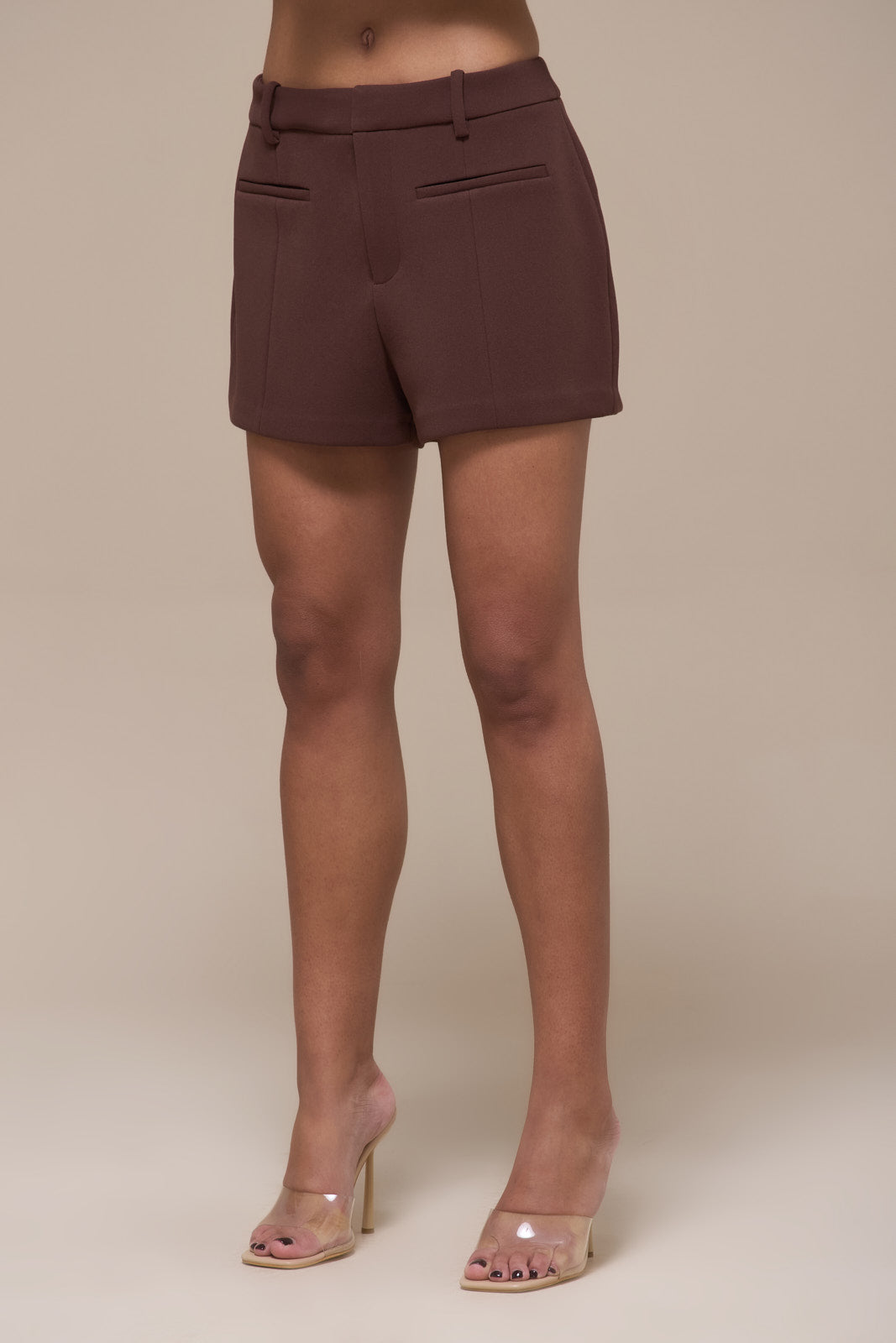 CHARLOTTE MID WAIST SUITING MINI SHORTS | CHOCOLATE