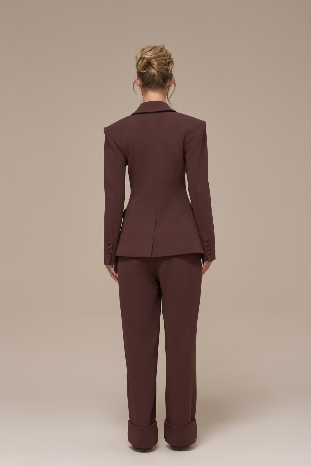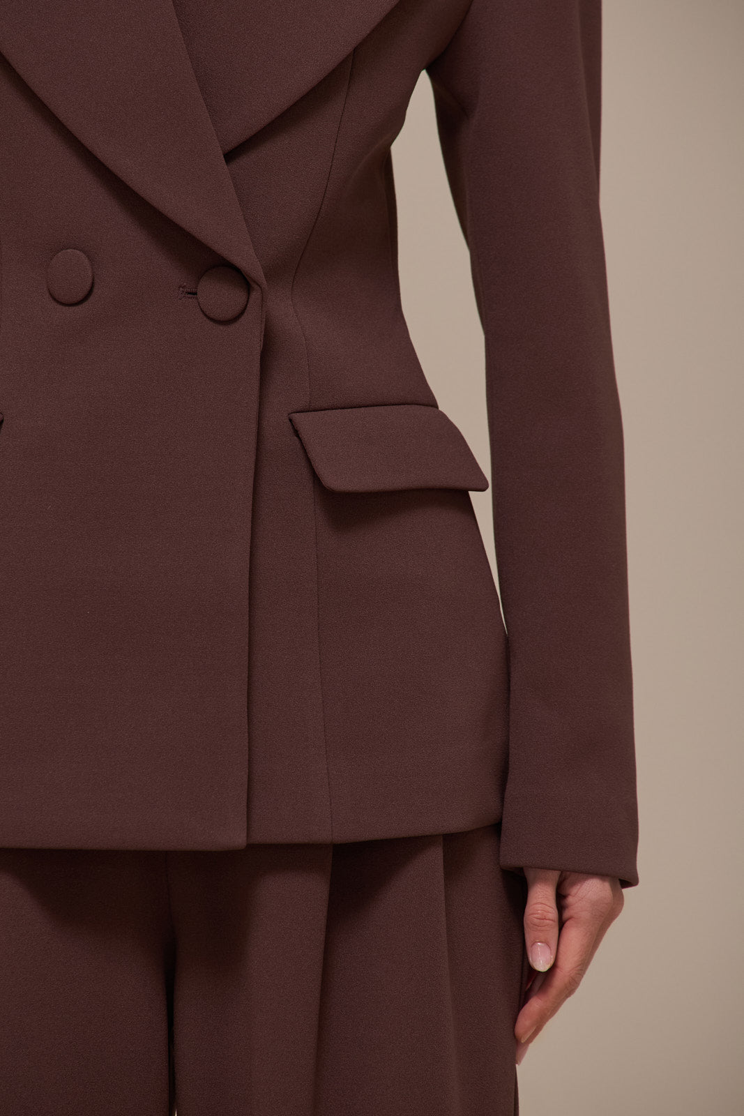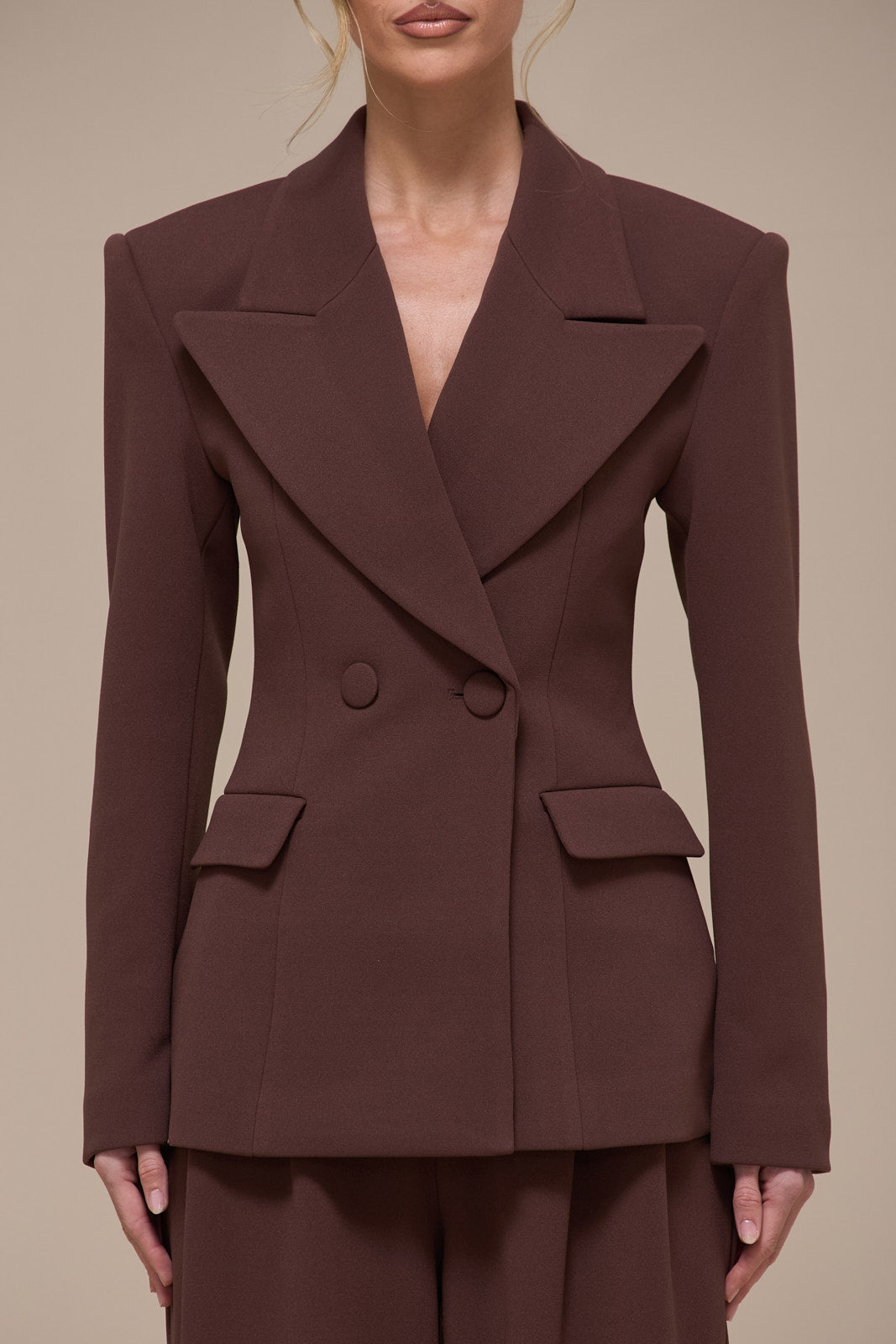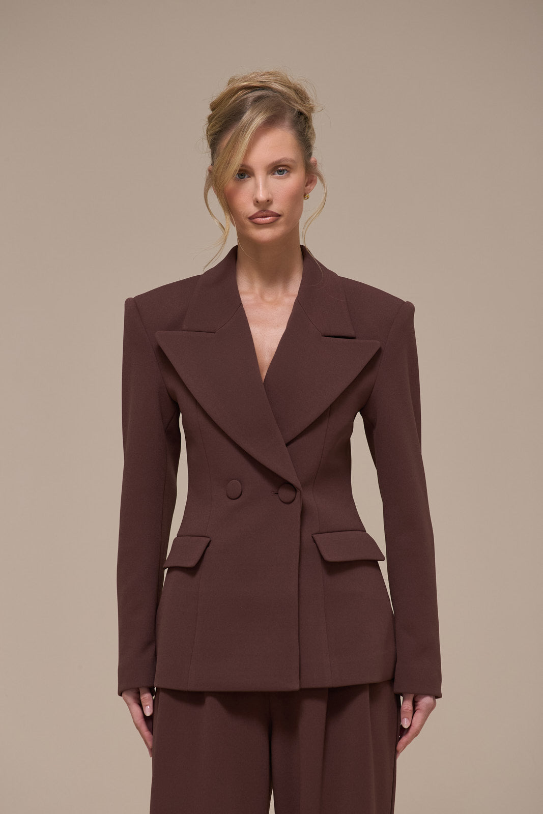 CHARLOTTE DOUBLE BREASTED PADDED SUITING JACKET | CHOCOLATE