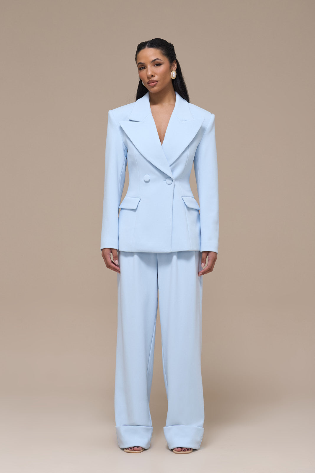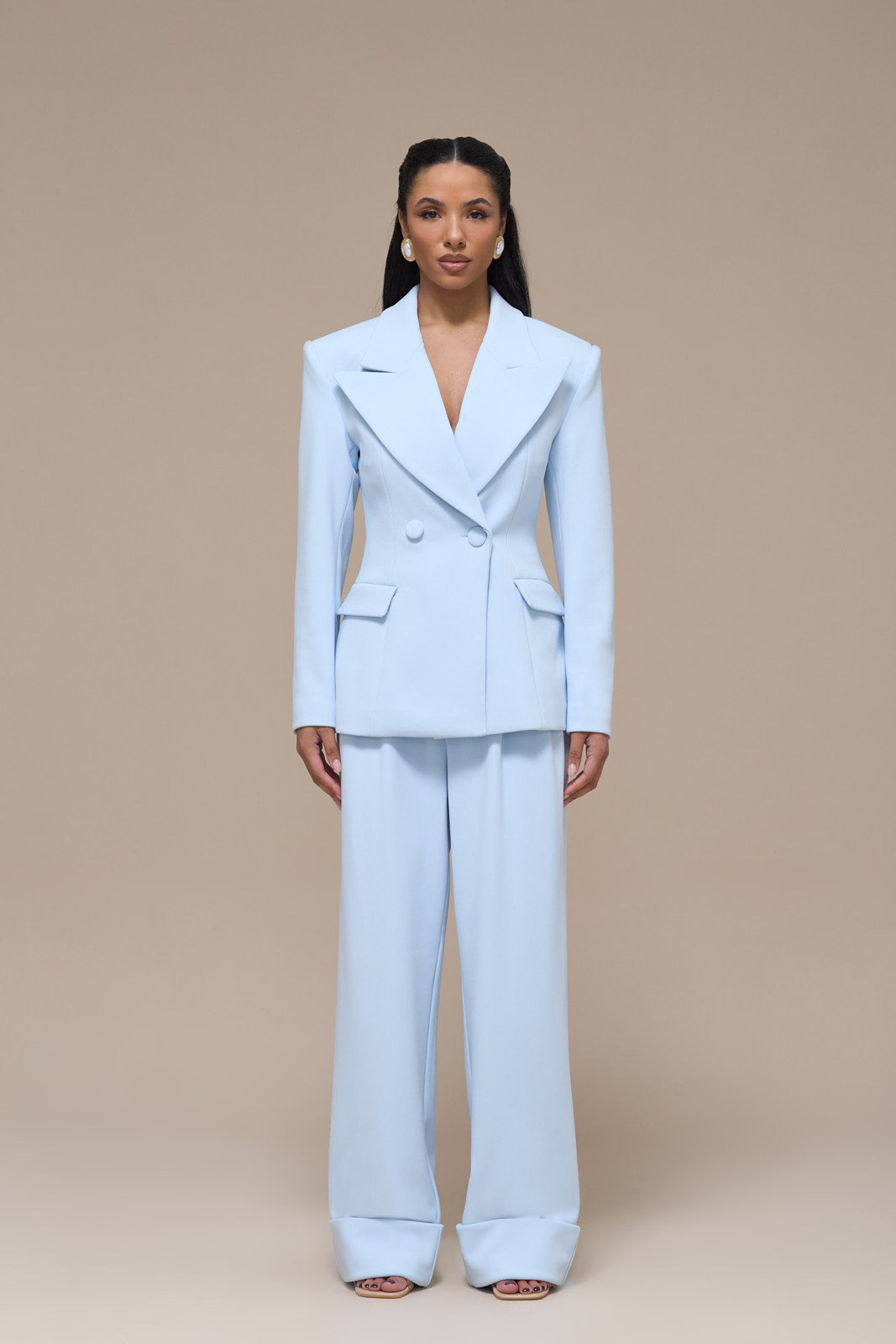 CHARLOTTE HIGH WAIST PLEATED SUITING TROUSERS | BABY BLUE