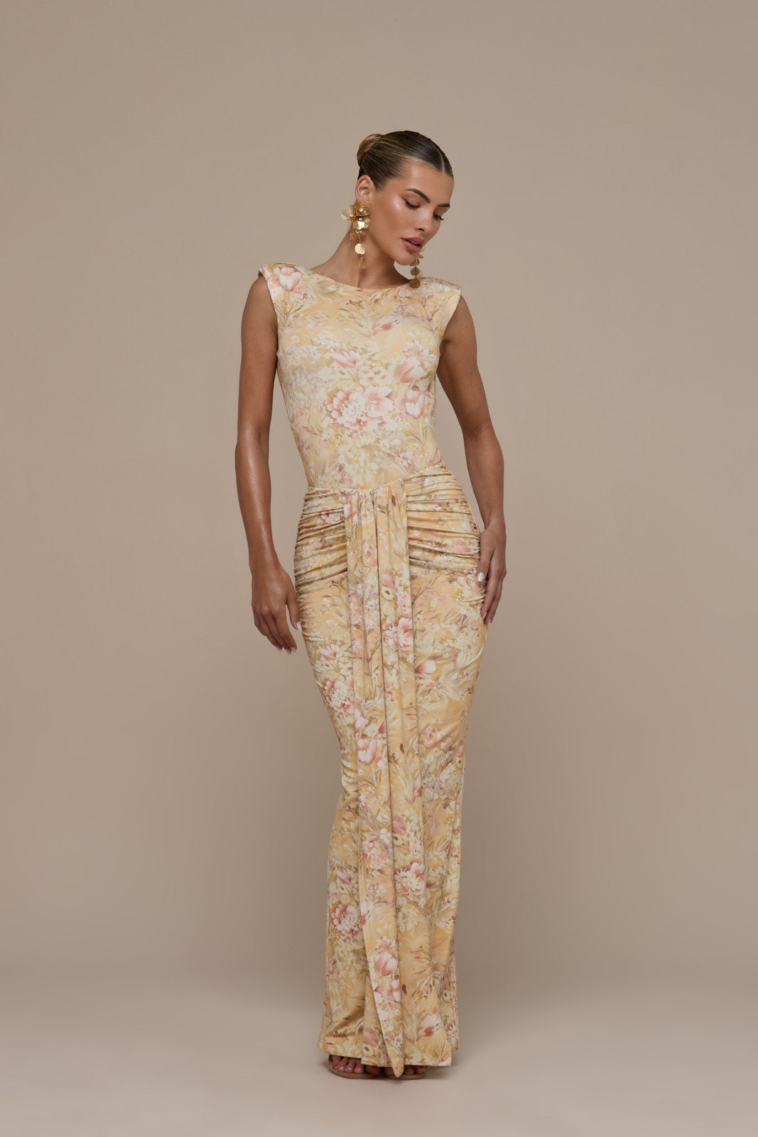NARA DRAPE MAXI SKIRT | YELLOW FLORAL
